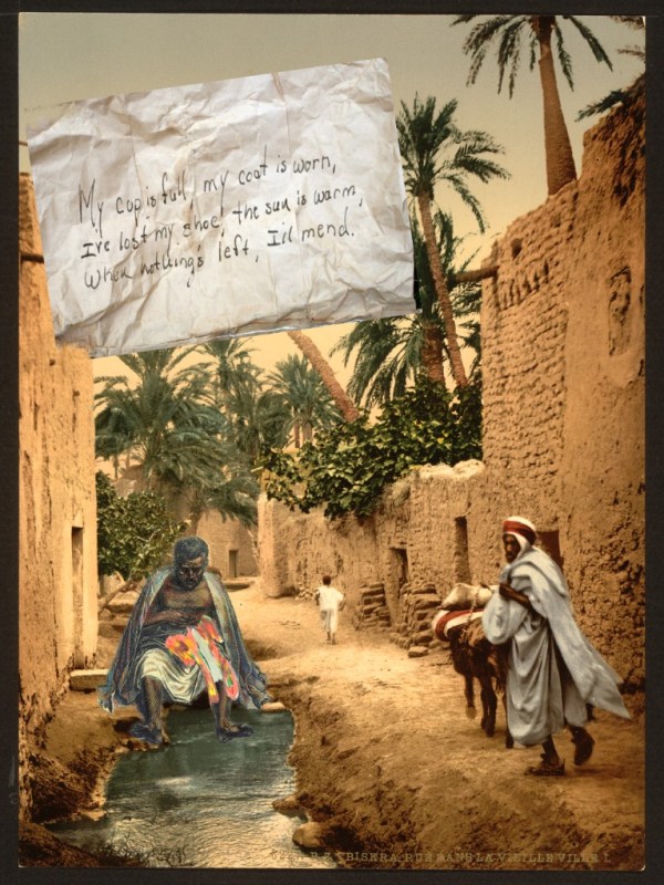 Author’s note: “I call this and similar digital poems ‘vaiku,’ or visual haiku, not strictly syllabic but Western haiku, to use Kerouac’s term, brief illuminations rendered in the haiku spirit. These works utilize public domain materials with hand-painted and/or hand-drawn elements.”