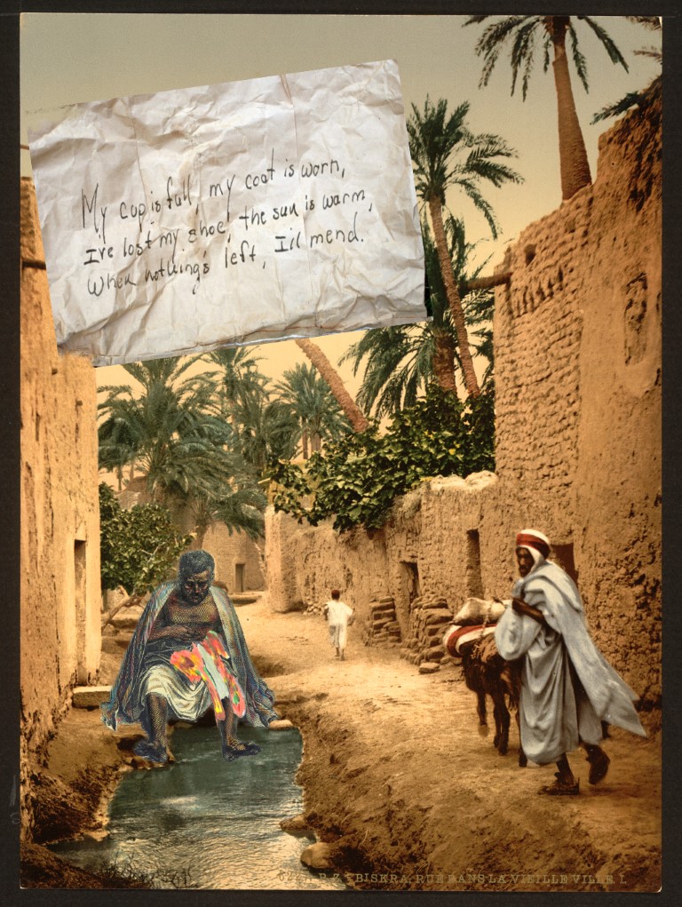Author’s note: “I call this and similar digital poems ‘vaiku,’ or visual haiku, not strictly syllabic but Western haiku, to use Kerouac’s term, brief illuminations rendered in the haiku spirit. These works utilize public domain materials with hand-painted and/or hand-drawn elements.”